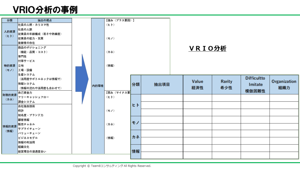 RBV(資源ベース理論)から導き出されたフレームワークがVRIO分析です。